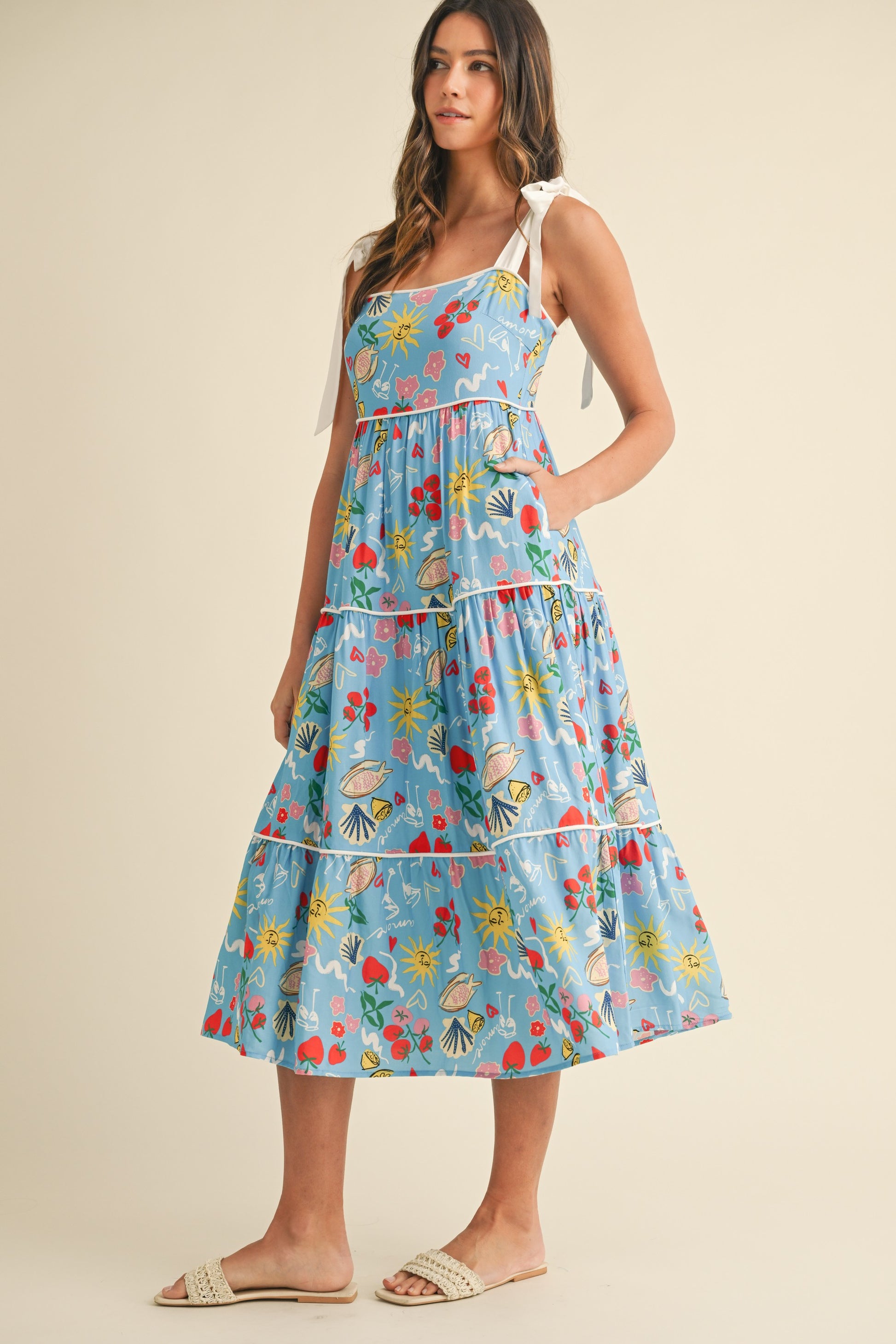 AnnieWear Picnic Print Midi Dress