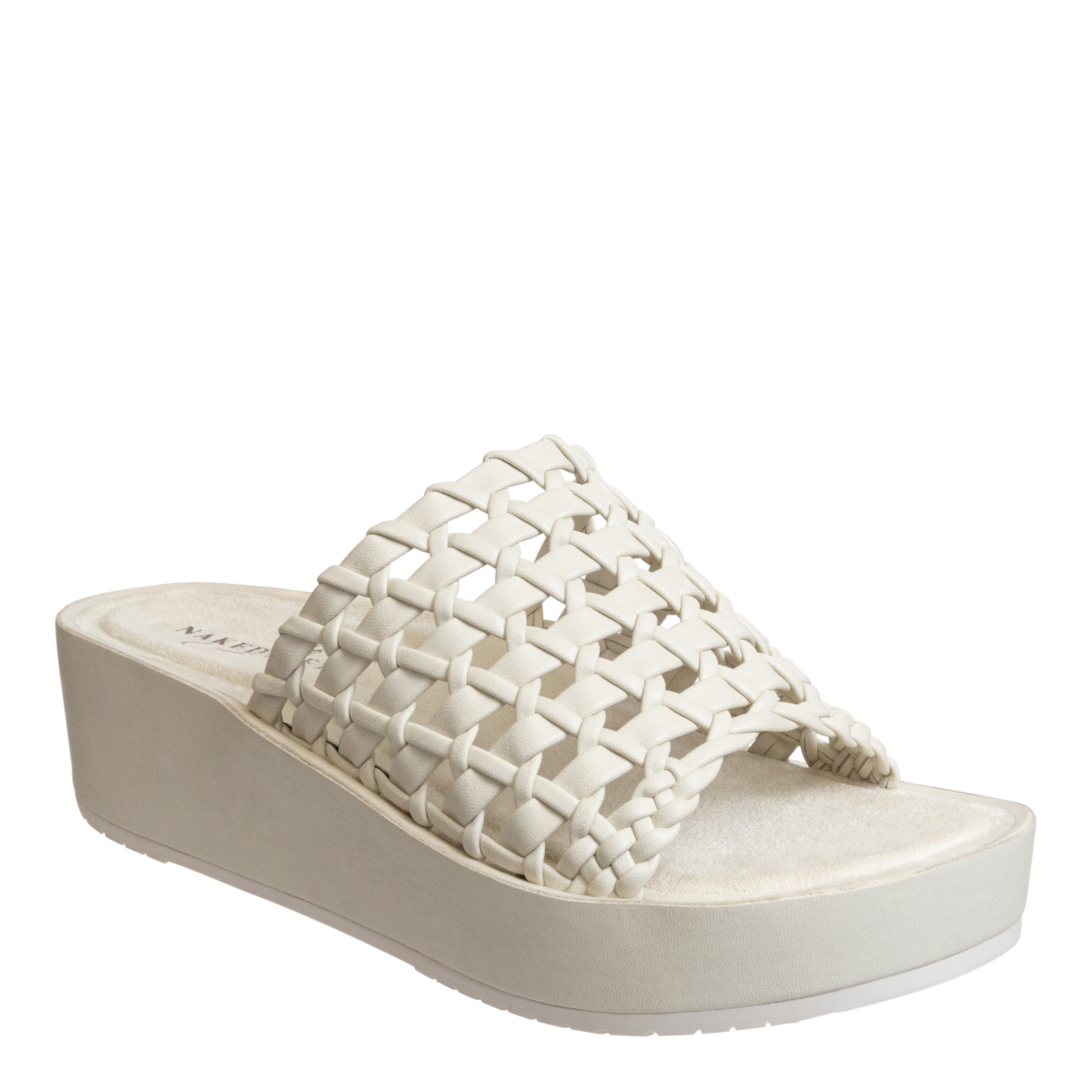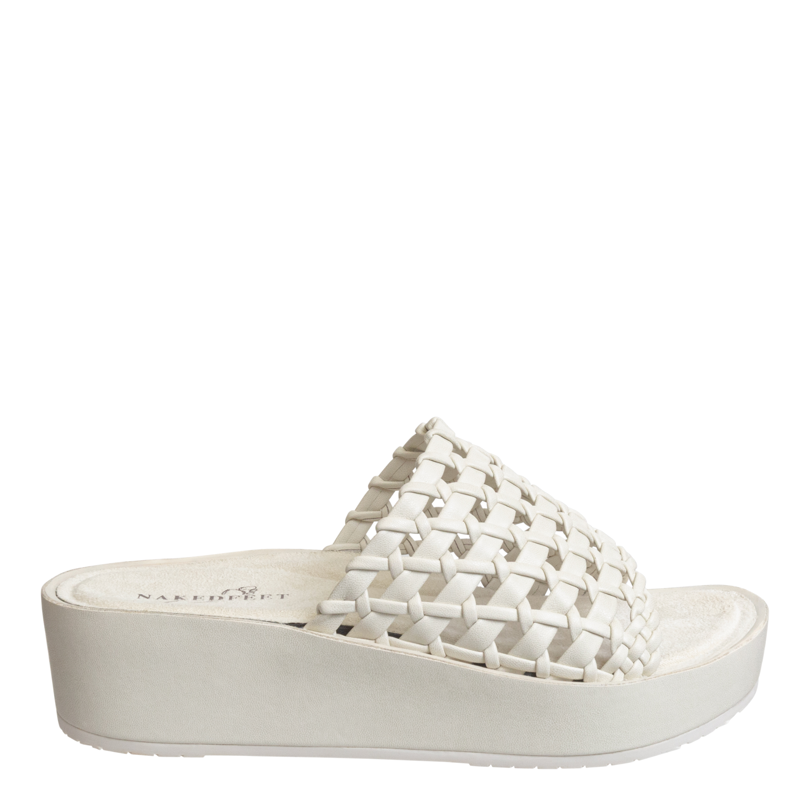 Your sandals are begging to compete with your summer handbags. Give them a chance to win. These woven platform sandals are crafted with beautiful artisanal details on an effortless slip-on design. This soft white pairs well with poplin dresses and a full spectrum of summer and resort wear essentials.