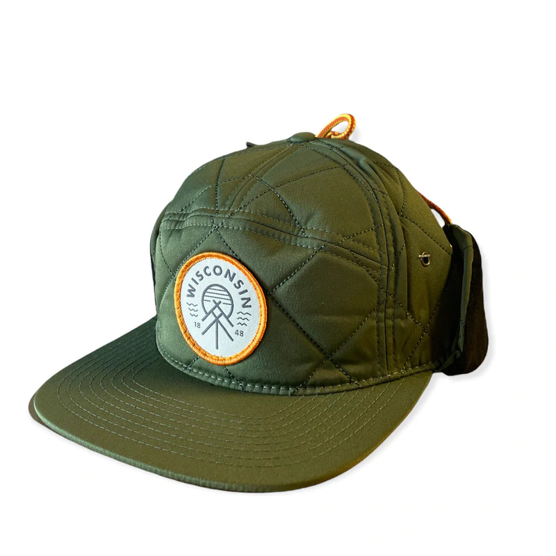 These quilted 7 panel hats are designed with all things Wisco in mind. The diamond quilted pattern combined with the micro corduroy lined ear flaps, boot lace ties, and a satin liner make for the perfect combo of function, style, and performance. Finished with our custom Native woven patch, these lids are ready for that Wisconsinite life.