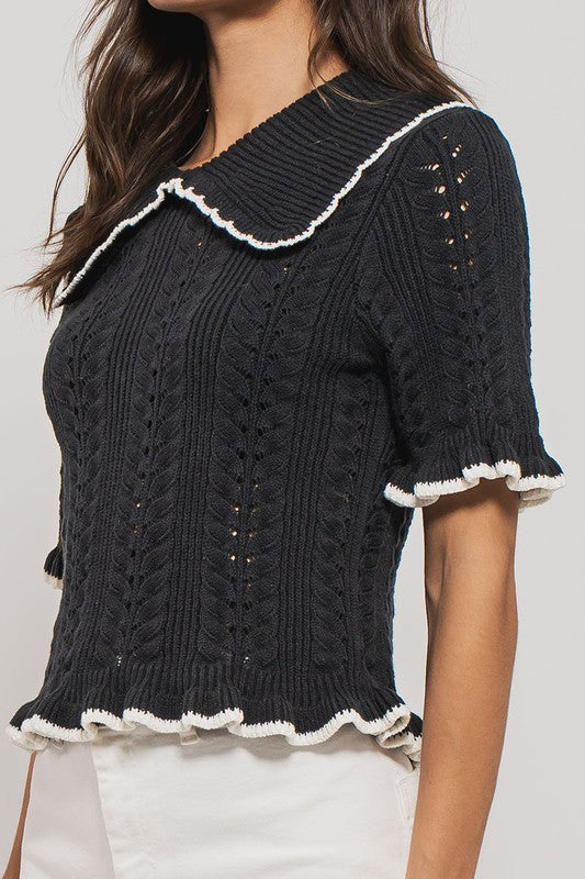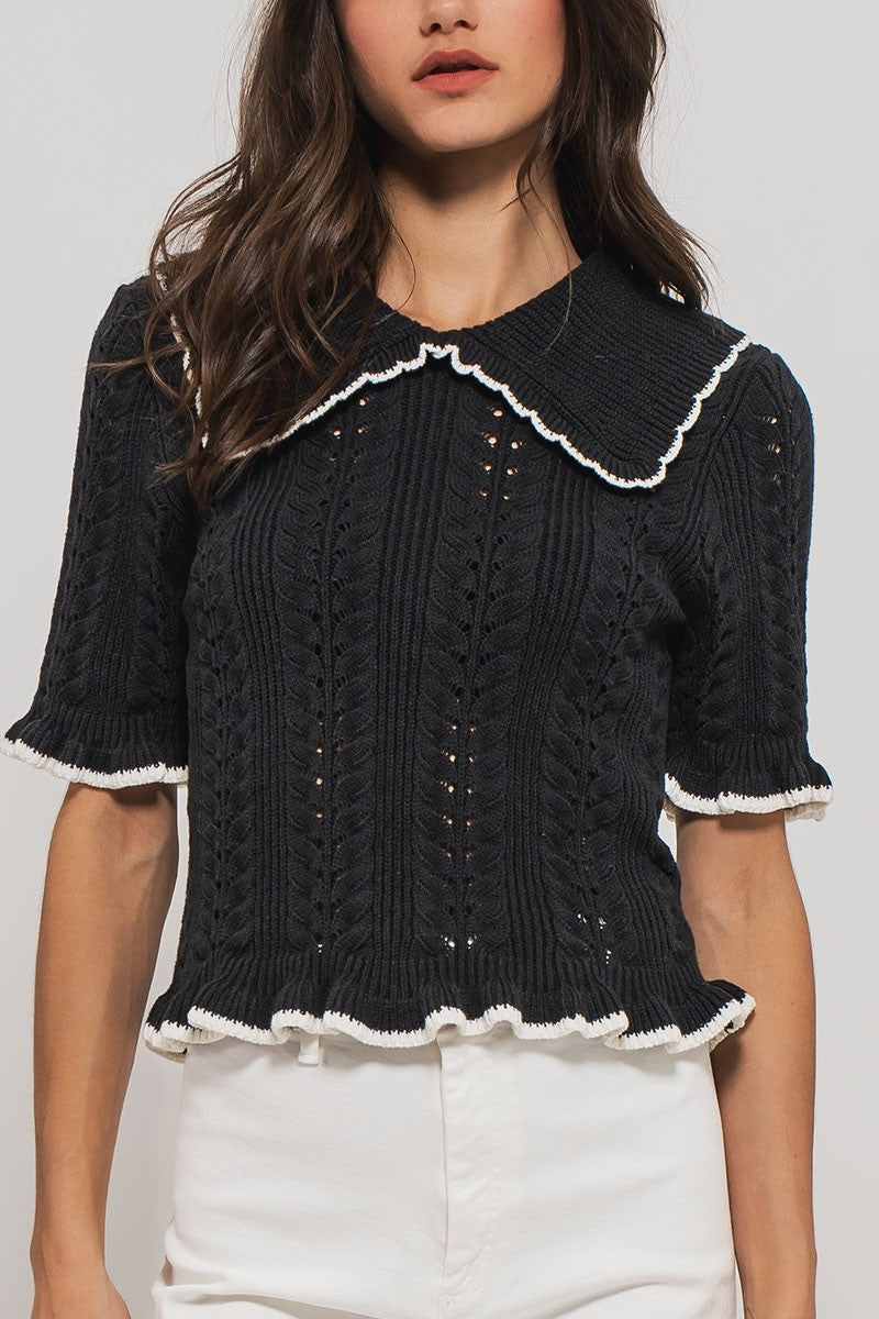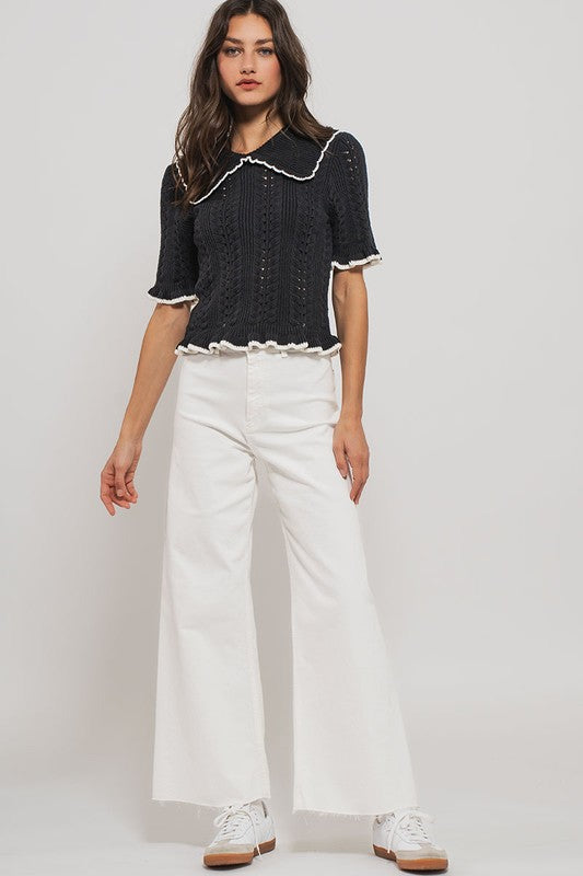 Urban Daisy Crochet Knit S/S Top